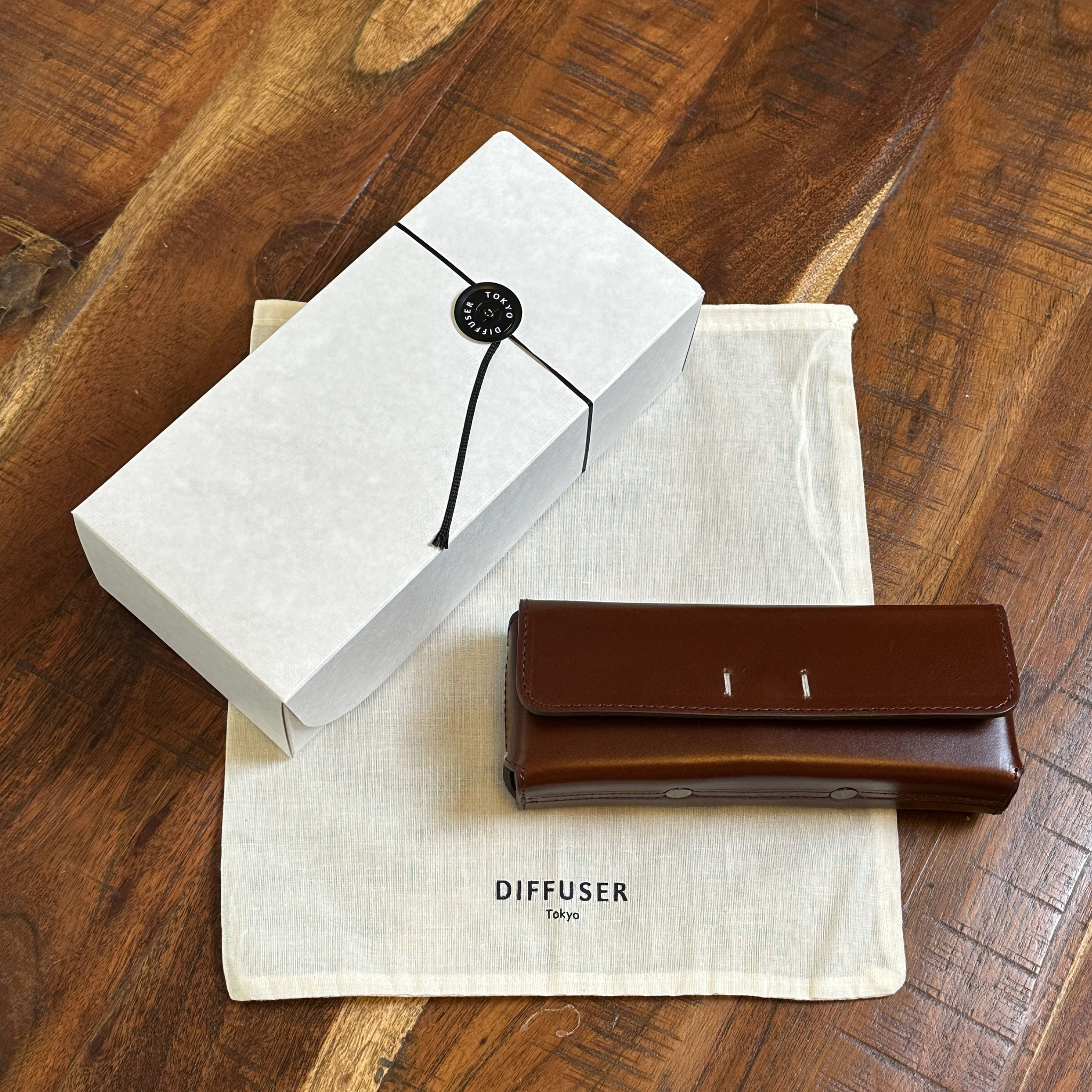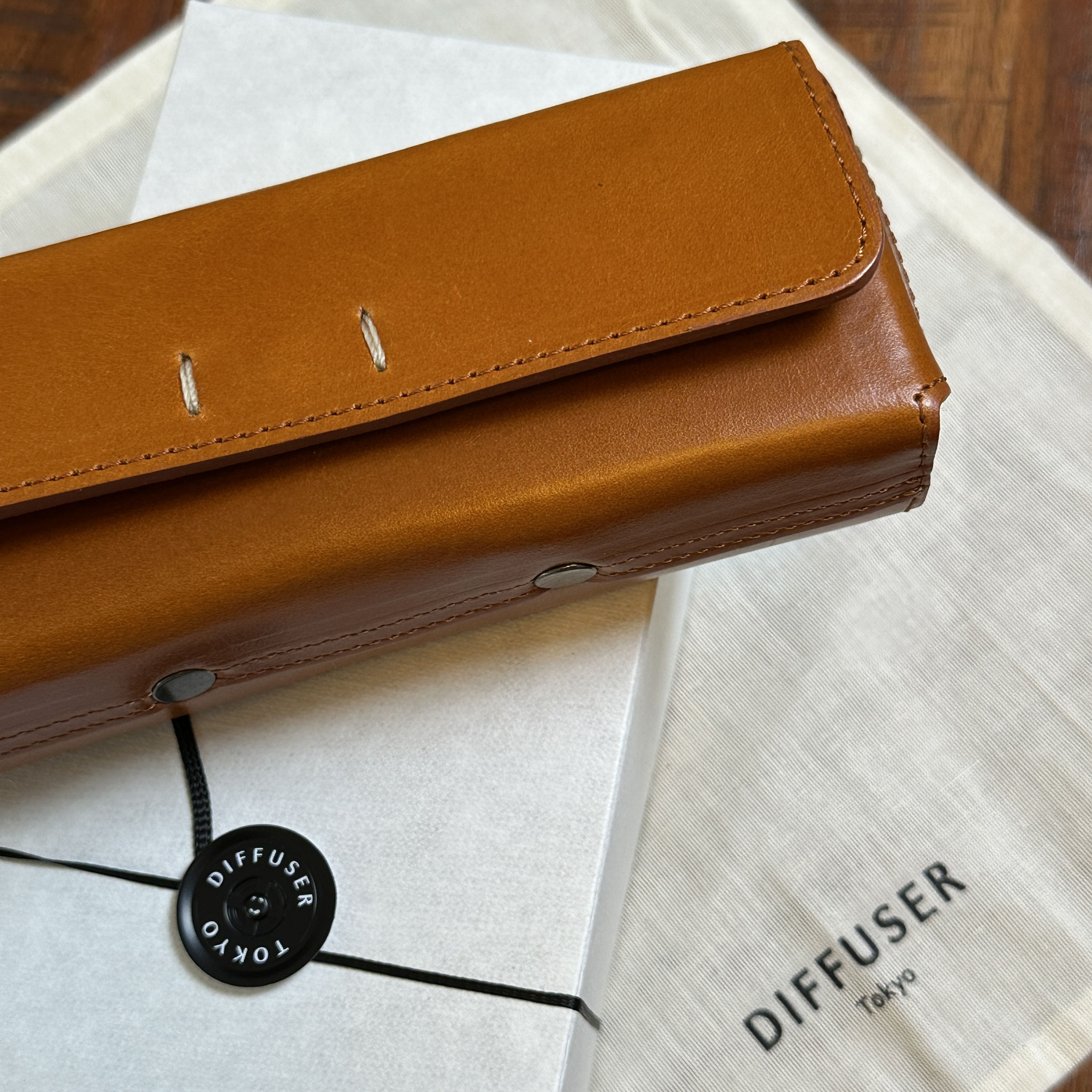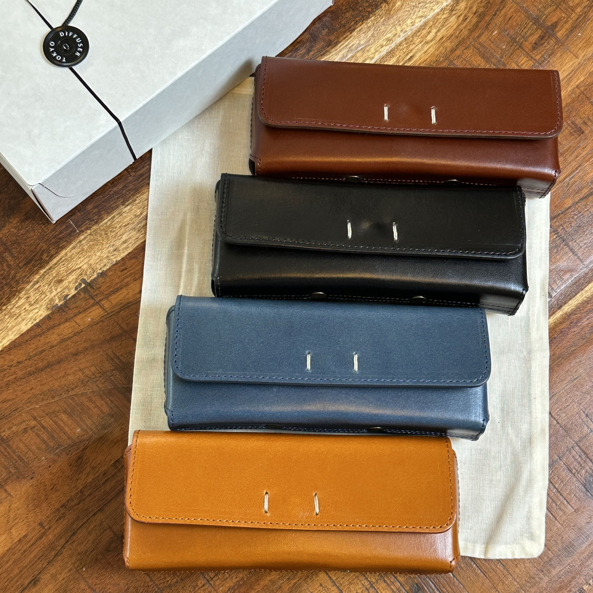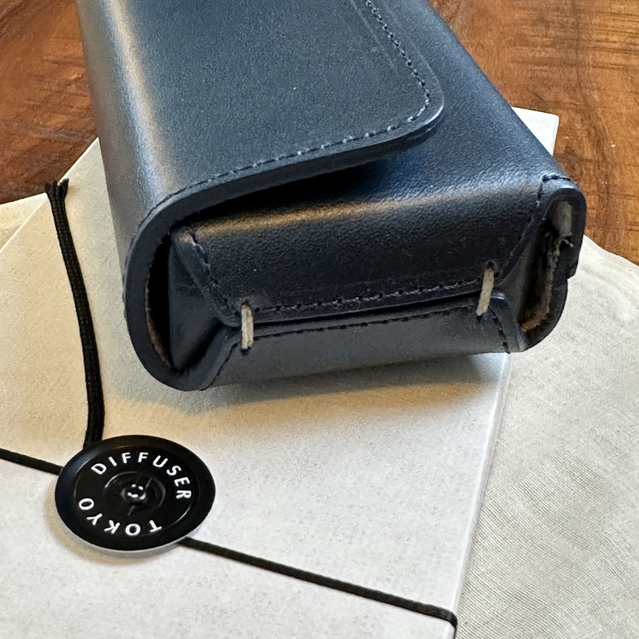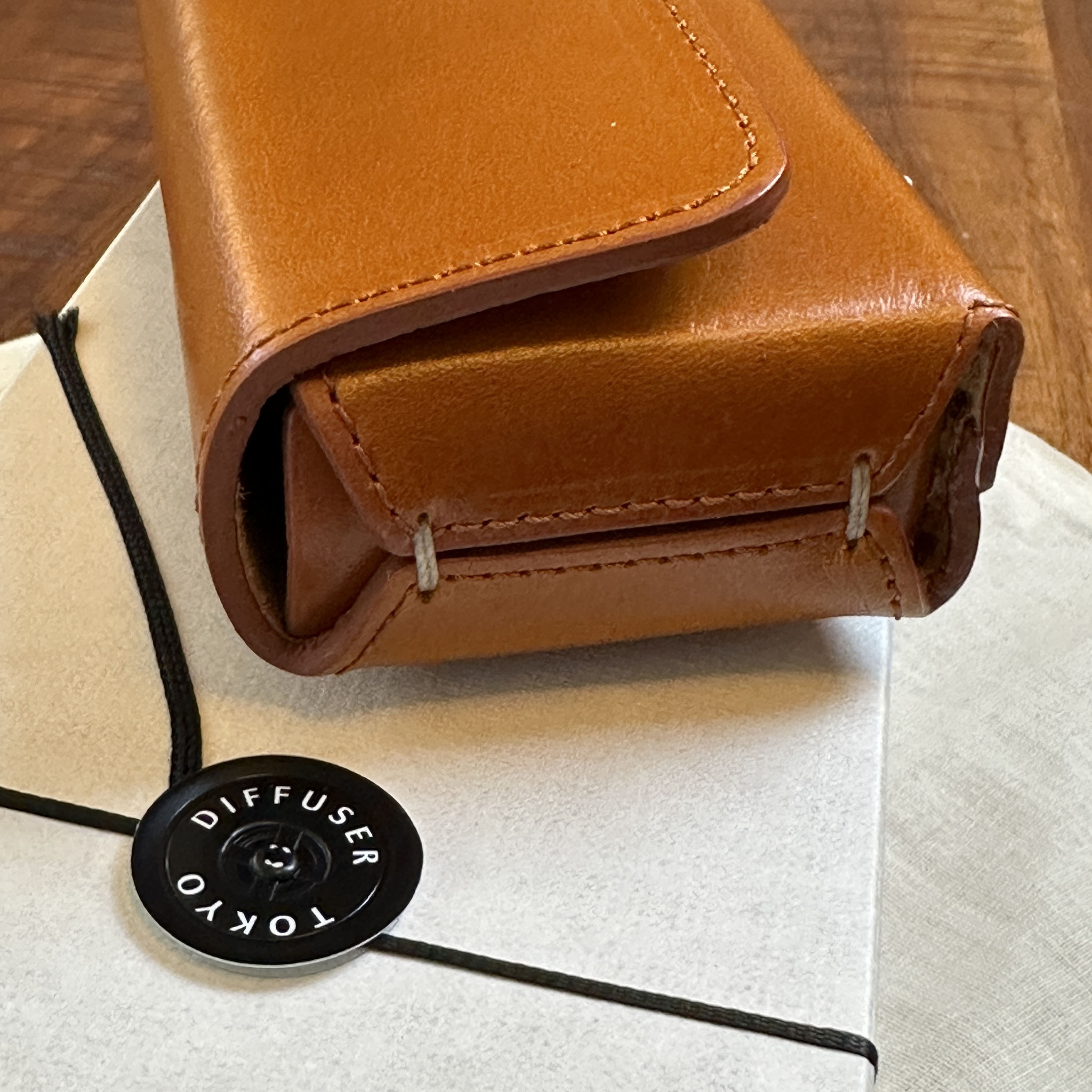 Brillenetui von Diffuser Tokyo - Zweilagiges, japanisches Leder - Aussen aus durchgefärbtem, ölveredeltem Rindleder und innen aus besonders weichem Wildleder, so wie es Deine Brillen lieben. Ein Highlight sind die sichtbaren, handvernähten Akzente in Sattelstich-Technik. Das Etui wird zu 100% in Handarbeit in Japan, nachhaltig produziert.