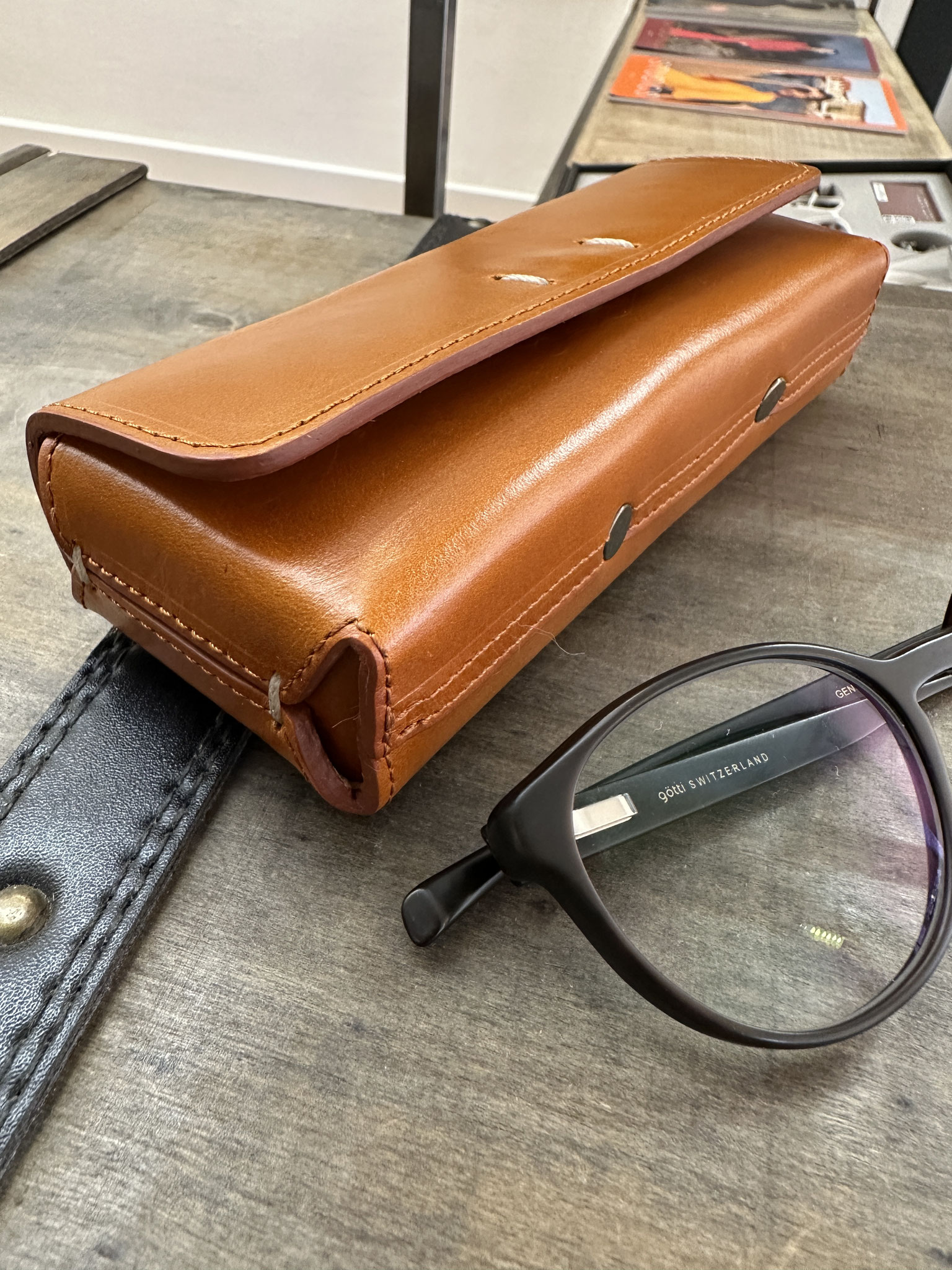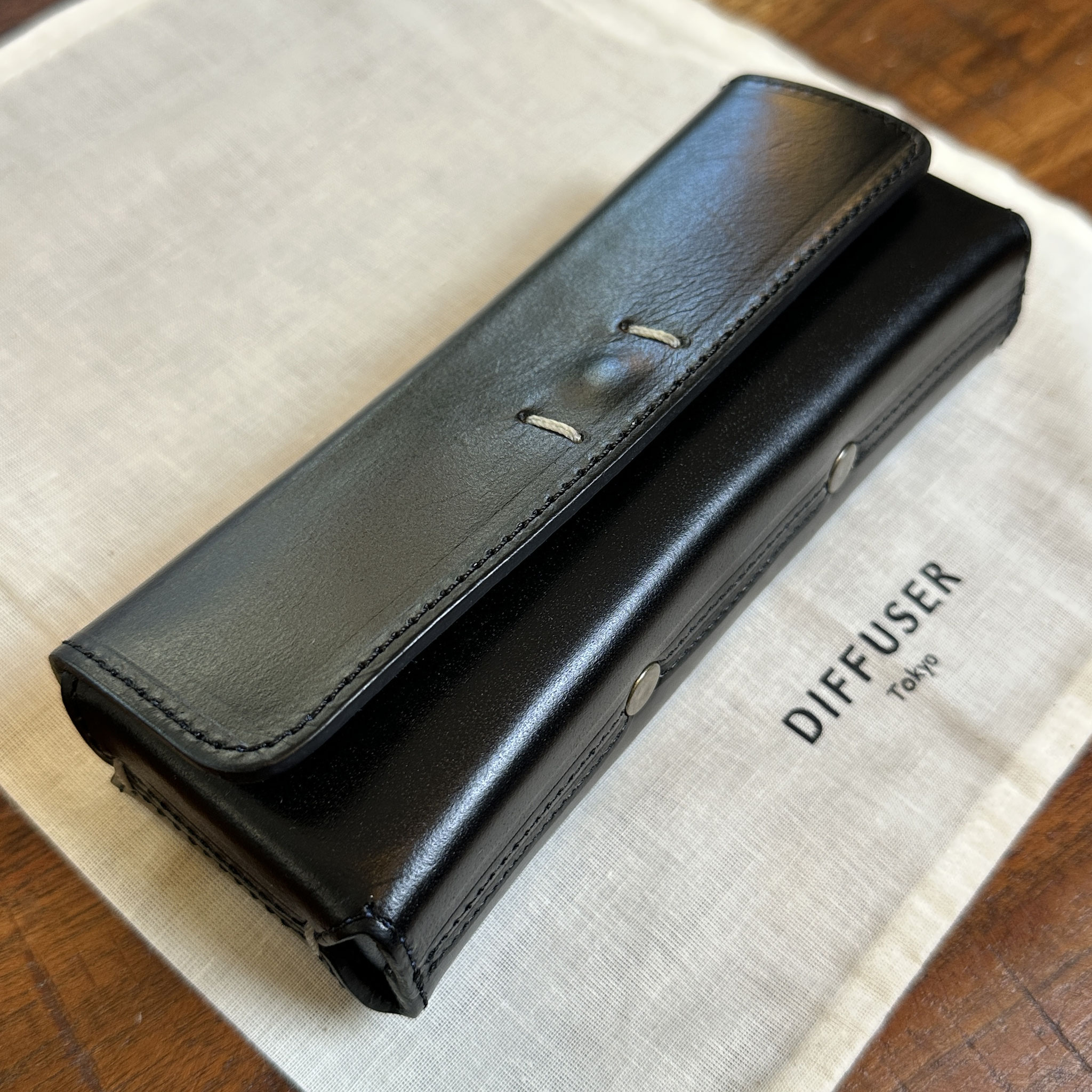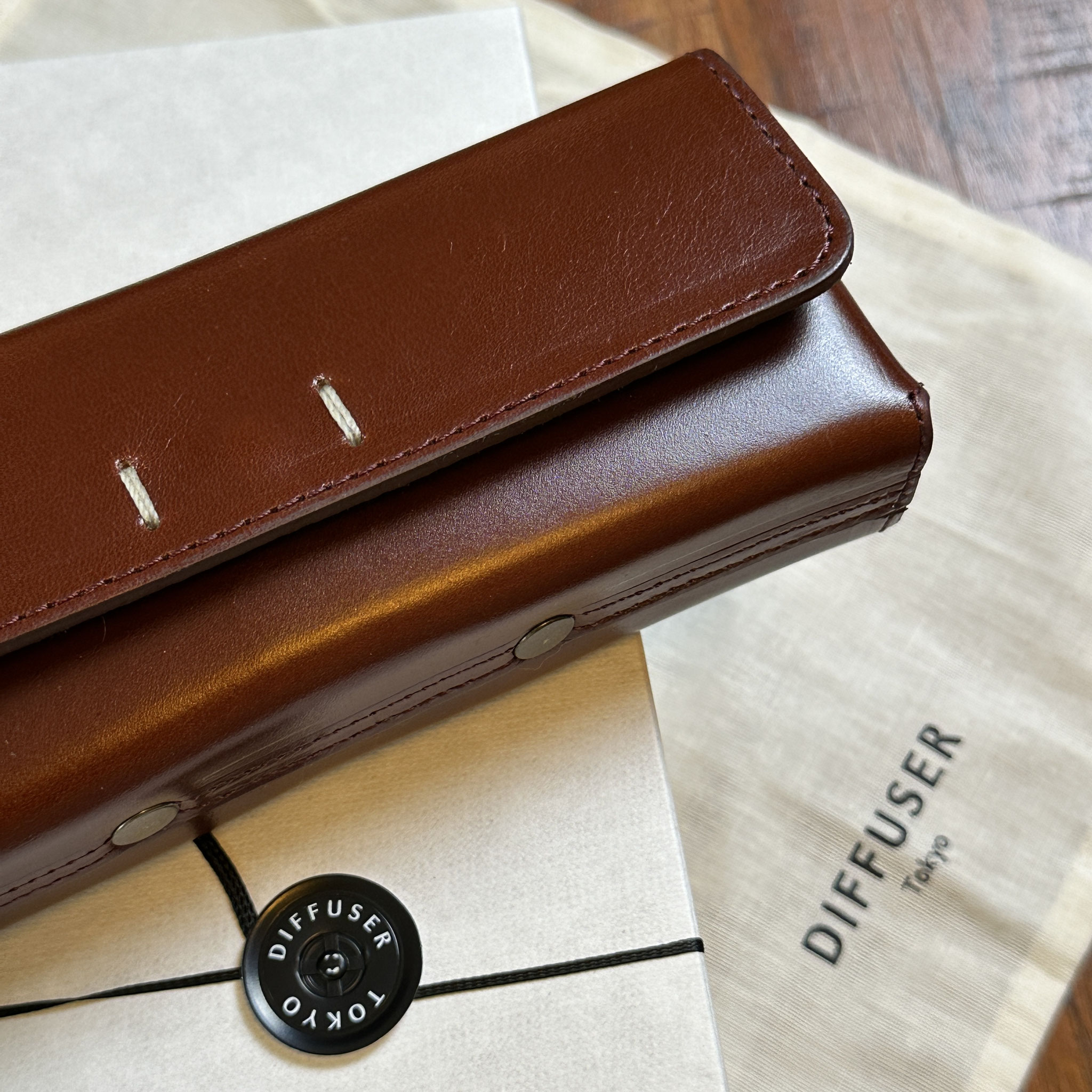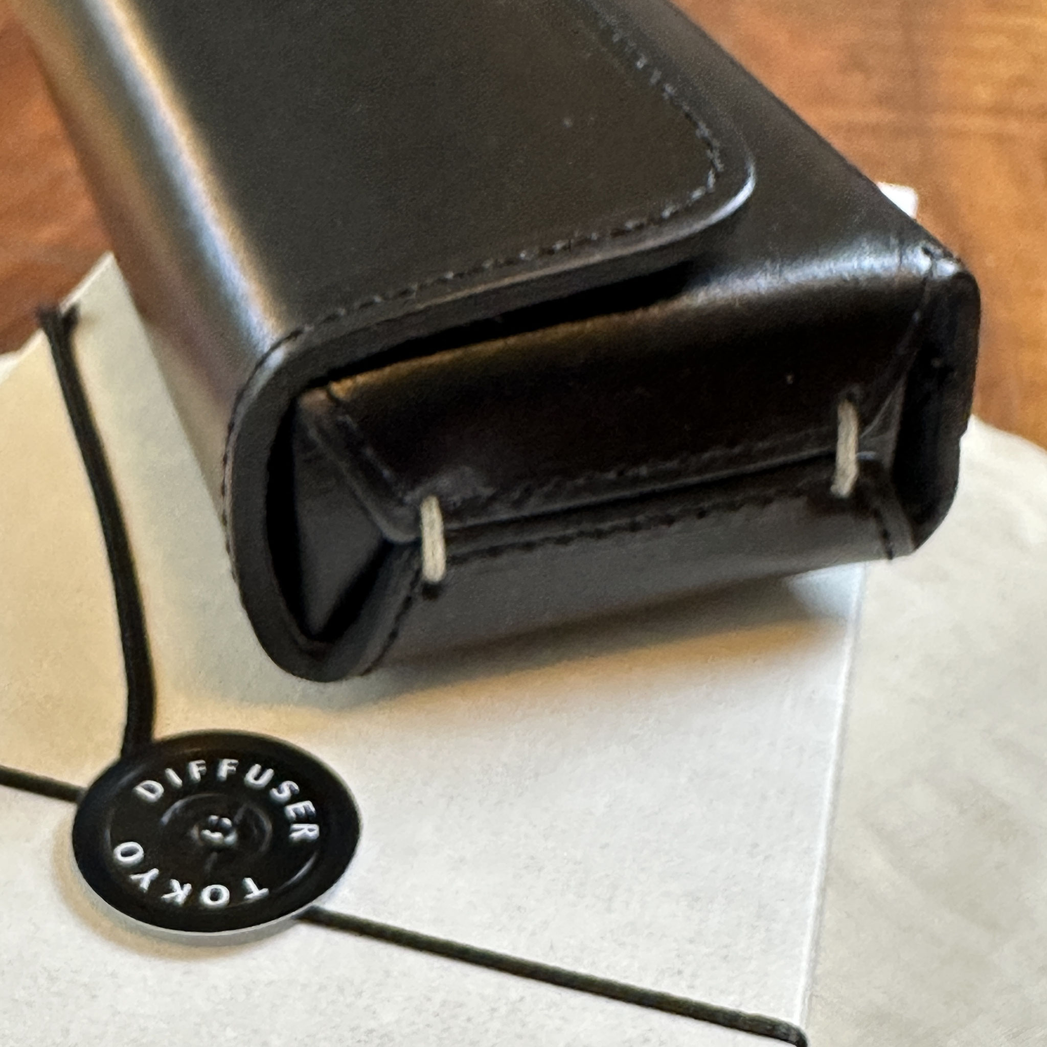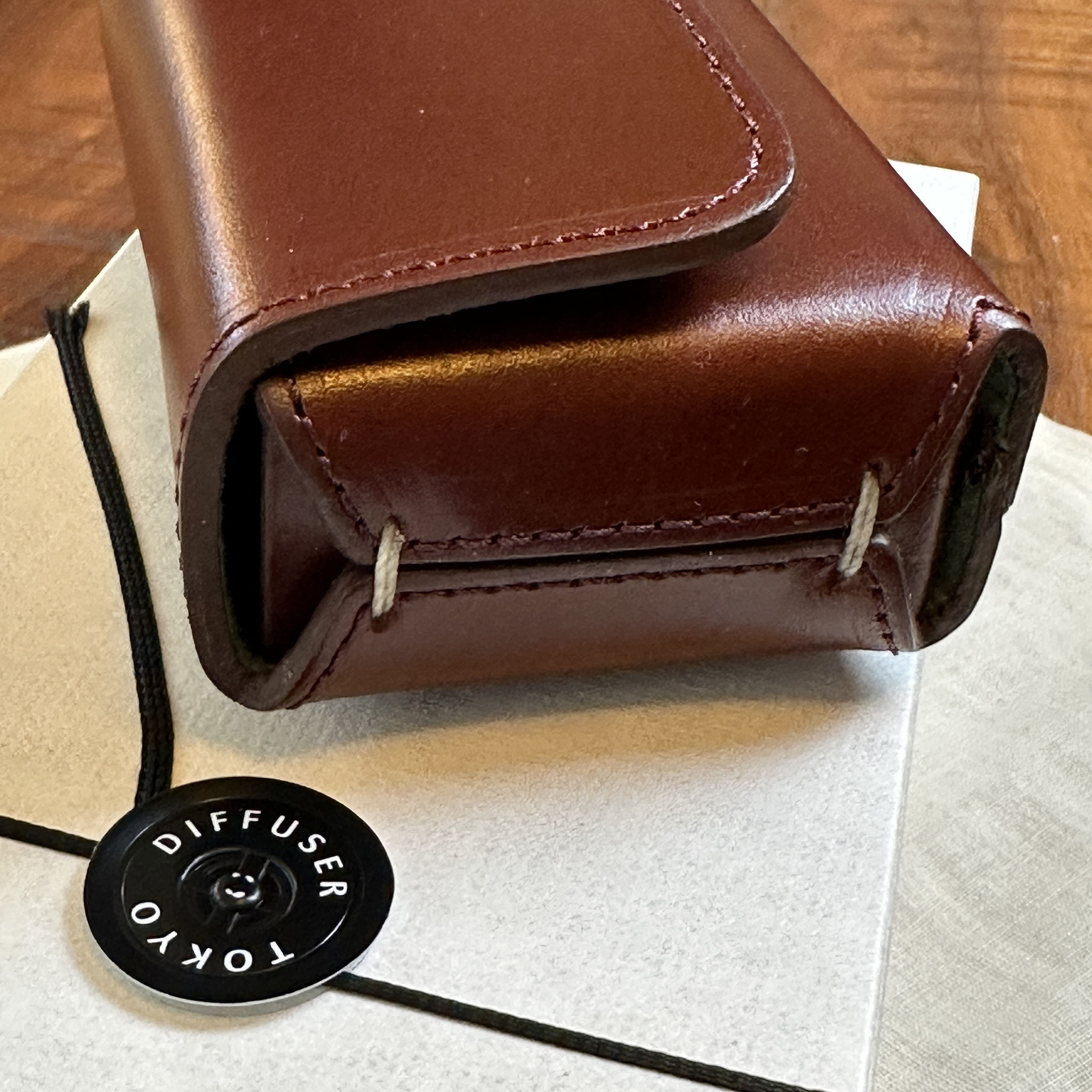 Brillenetui von Diffuser Tokyo - Zweilagiges, japanisches Leder - Aussen aus durchgefärbtem, ölveredeltem Rindleder und innen aus besonders weichem Wildleder, so wie es Deine Brillen lieben. Ein Highlight sind die sichtbaren, handvernähten Akzente in Sattelstich-Technik. Das Etui wird zu 100% in Handarbeit in Japan, nachhaltig produziert.