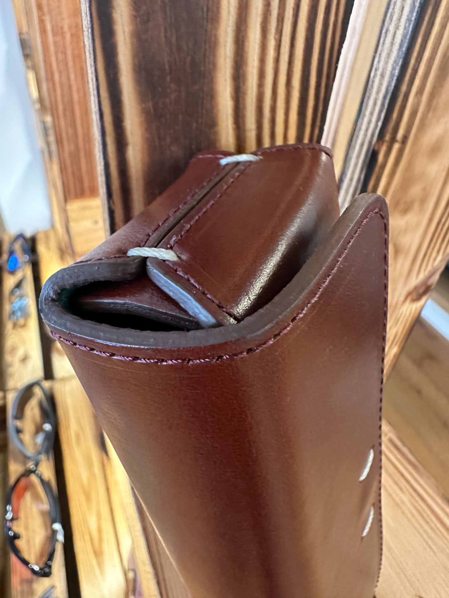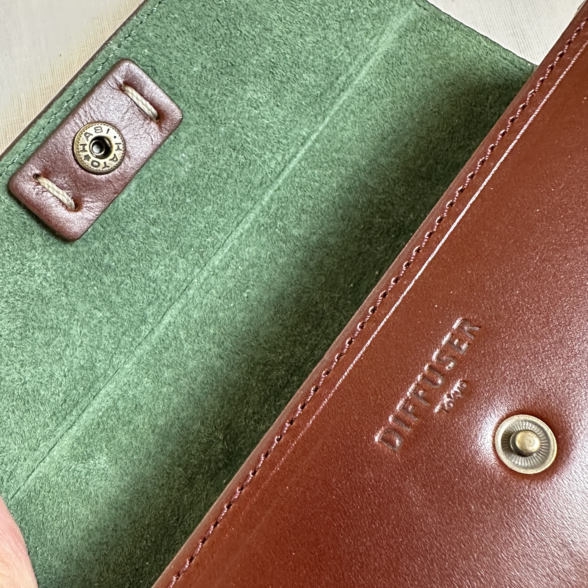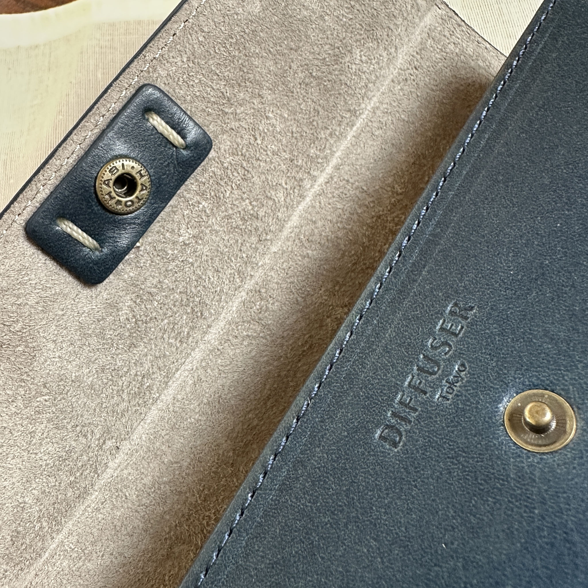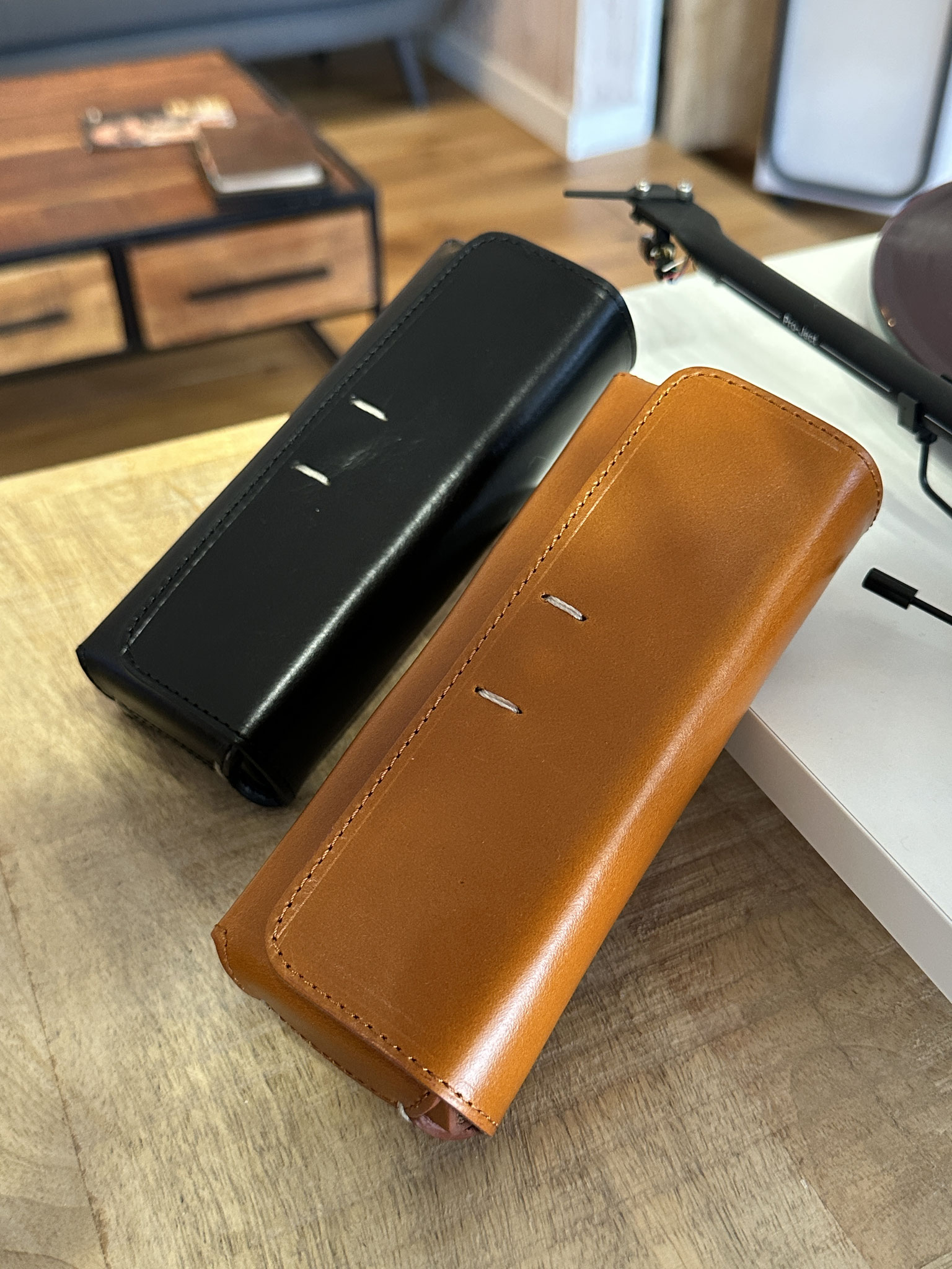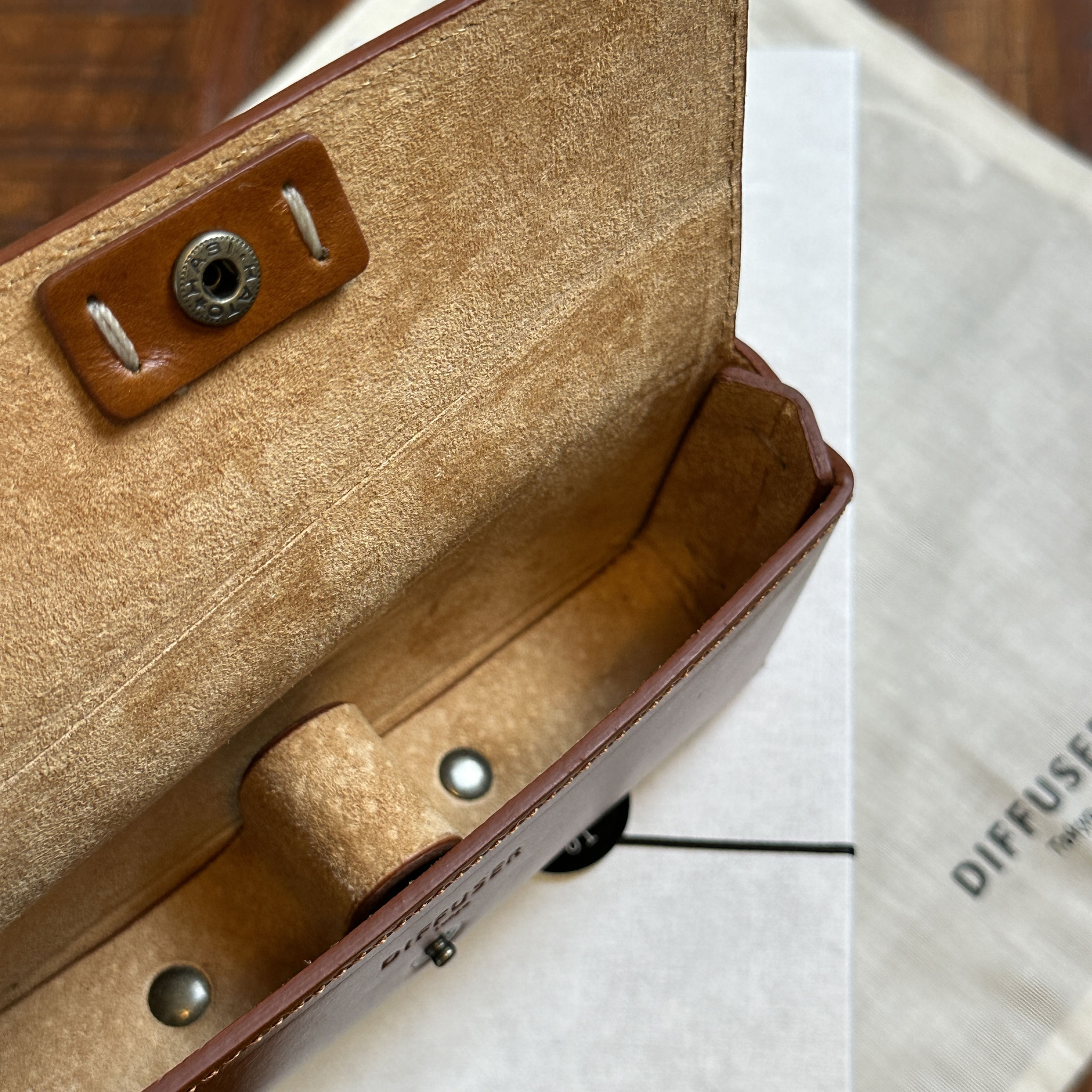 Brillenetui von Diffuser Tokyo - Zweilagiges, japanisches Leder - Aussen aus durchgefärbtem, ölveredeltem Rindleder und innen aus besonders weichem Wildleder, so wie es Deine Brillen lieben. Ein Highlight sind die sichtbaren, handvernähten Akzente in Sattelstich-Technik. Das Etui wird zu 100% in Handarbeit in Japan, nachhaltig produziert.